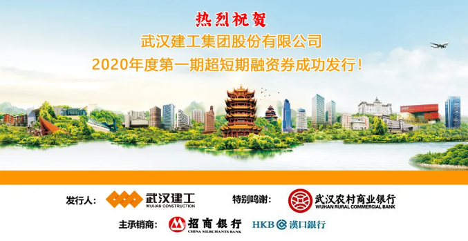 6月30日,武漢建工集團(tuán)股份有限公司2020年度第一期超短期融資券成功發(fā)行,發(fā)行金額為3億元人民幣,期限270天,票面利率為3.2%,由招商銀行擔(dān)任牽頭主承銷商及簿記管理人,漢口銀行擔(dān)任聯(lián)席主承銷商。