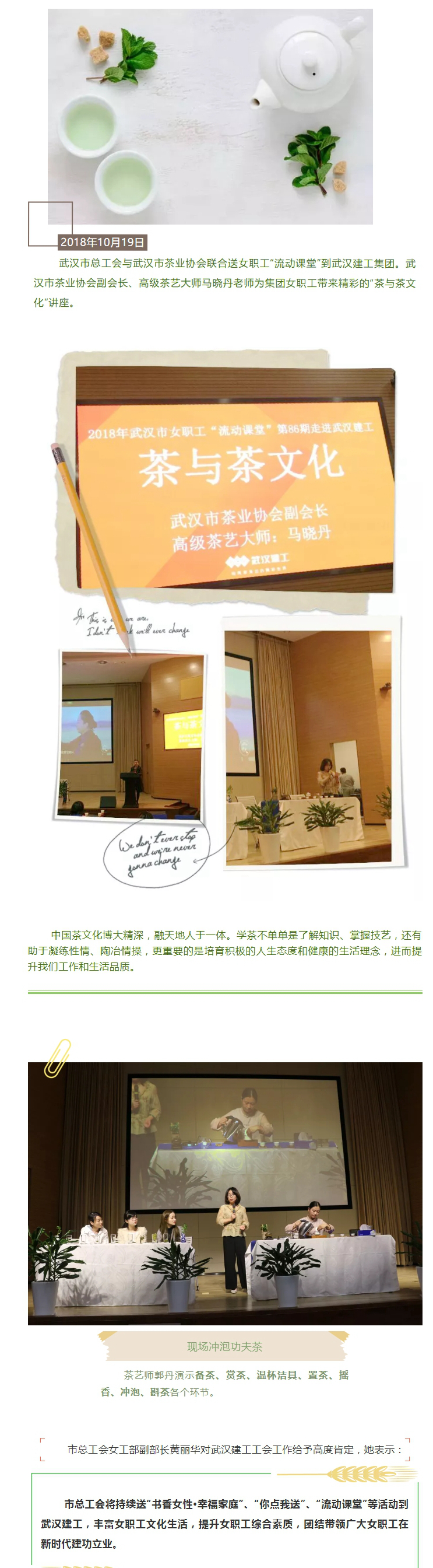 茶香芬芳 余韻悠長(zhǎng) 市總工會(huì)女職工流動(dòng)課堂走進(jìn)武漢建工