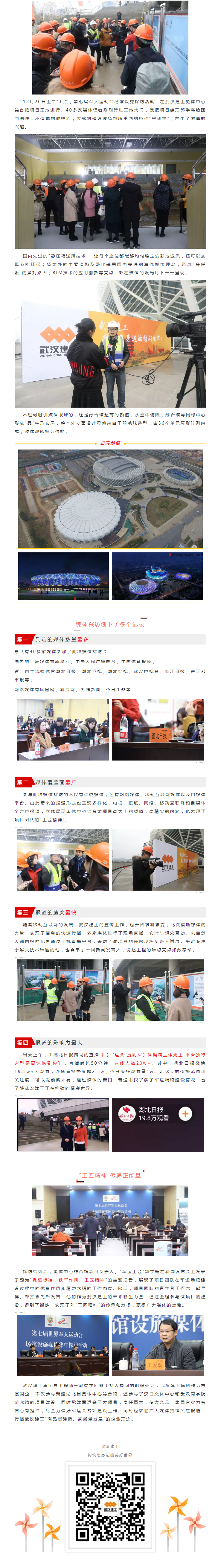 創(chuàng)紀(jì)錄!40多家媒體全方位聚焦軍體會(huì)項(xiàng)目——武漢建工總承包建設(shè)的湖北省奧體中心綜合館
